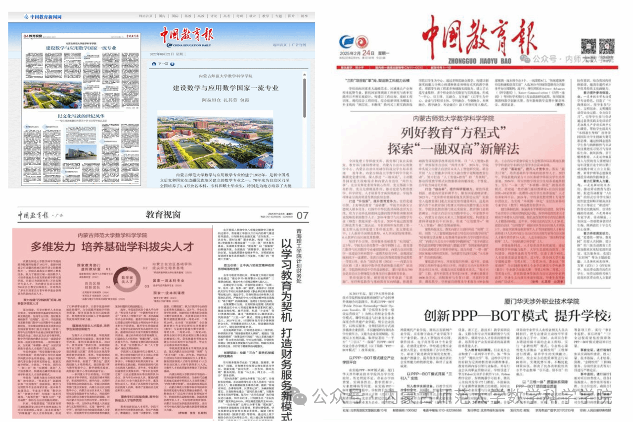 qy球友会始终以育人为中心,教学和科研并重。2021年获批内蒙古自治区应用数学中心,2022年获批教育部虚拟教研室、自治区数学一流建设学科,2023年获批教育部重点实验室、自治区数学一流拔尖培育学科和自治区基础学科拔尖员工培养基地,至此构建起“教育部虚拟教研室+自治区创新团队+国家级一流课程+拔尖员工培养基地”四维融通的人才培育矩阵,形成了教学科研双融双促的良性循环,为全面提升教育质量、服务国家和自治区战略需求、培养数学创新人才和基础教育优秀师资贡献了应有力量。