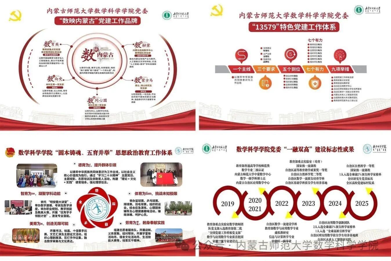 qy球友会坚持和加强党对教育事业的全面领导,坚持大抓基层的鲜明导向,以党员有为、党支部有力、党建工作有效“三有目标”,构建以“数映内蒙古”为核心,以数智育英(教育部重点实验室数学员工团队党支部)、数智融蒙(内蒙古自治区应用数学中心员工团队党支部)、数心向党(本科生一支部)、数绘同心圆(本科生二支部)、数说蒙古马(硕士研究生支部、博士研究生支部)为载体的党建品牌矩阵。2025年10月,qy球友会党委被评为全区高校党建示范创建和质量创优工作“党建标杆院系”,1名博士荣获“研究生党员标兵”。