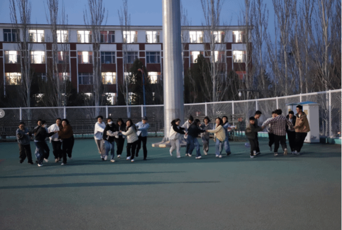大家一起书写焦虑、压力等负面情绪纸条,以分组竞技投掷沙包的方式“丢掉情绪”。同学们在同心协力走活动中手拉手围成小圈集体行进,在应对失误、调整步调的过程中锤炼抗挫力,搭建起同伴信任与支持的桥梁。