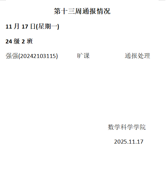 qy球友会2025——2026年度第一学期第十三周通报情况
