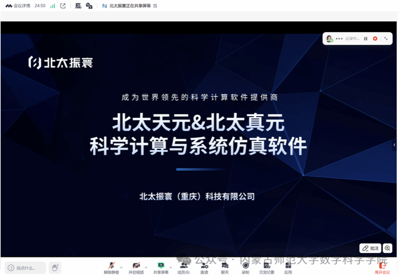 会上,双方就信息与计算科学专业的学科建设、产学研基地建设及国产科学计算软件的落地应用达成多项共识。萨和雅院长表示,qy球友会将依托数值分析等课程,系统引入北太天元软件,结合实训营模式,扩大国产软件在人才培养中的应用范围;同时希望与北太振寰合作开发适合数学学科的人工智能通识课程,推动软件与教学的深度融合,共建产学研基地。