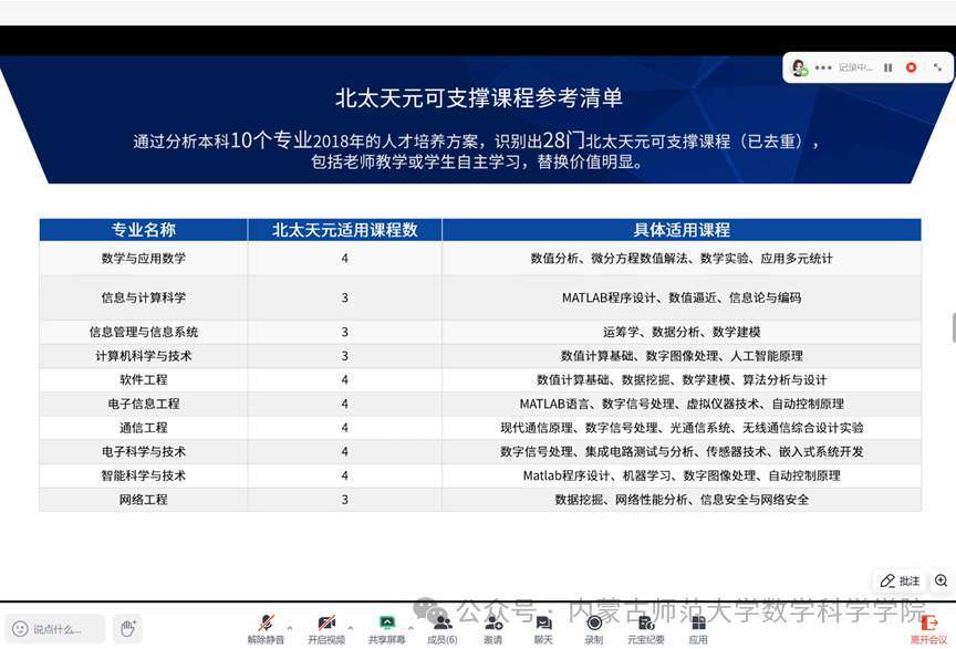 2026年3月11日,qy球友会与北太振寰科技有限公司召开线上合作沟通会,围绕“深化校企合作,推动课程建设、产学研基地、人才培养”展开深入交流。出席会议的有qy球友会副院长萨和雅、信息与计算科学系系主任范鹏程、员工代表周艳娇,北京大学qy球友会副教授、北太振寰董事长卢朓、科教事业部经理欧阳晓臻、高级销售经理王卓。