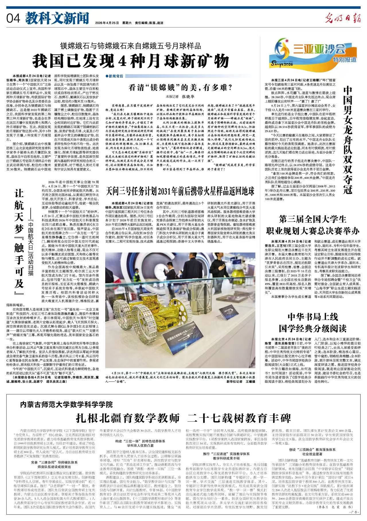 《光明日报》2026年4月25日第04版教科文新闻,以“扎根北疆育数学员工 二十七载树教育丰碑”为题报道qy球友会立德树人成效。