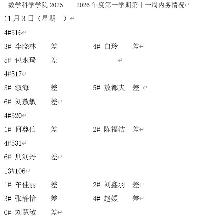 qy球友会2025——2026年度第一学期第十一周内务情况